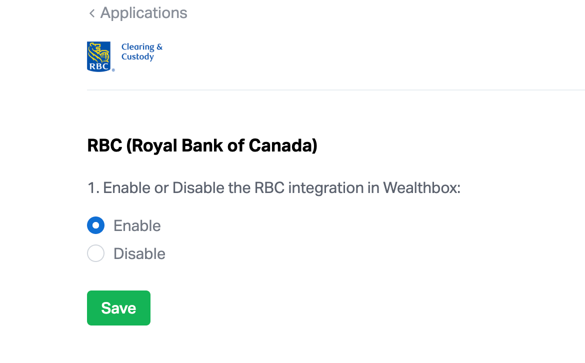 How do I enable the RBC Integration with Wealthbox?
