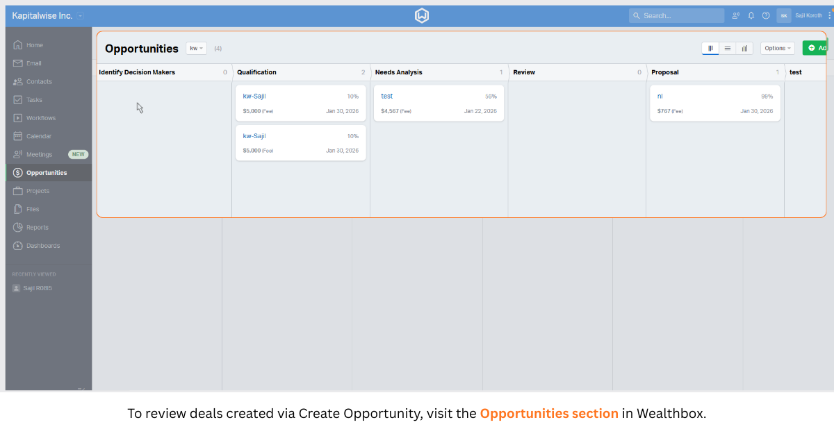 How to Create Workflows to Move Leads from Kapitalwise to Wealthbox